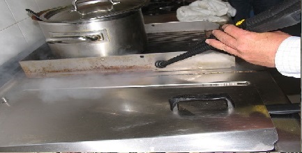 El vapor a 180° y con presión es capaz de eliminar toda grasa acumuladada en rincones de: shaft de basura, campanas,freidoras, planchas, hornos,etc. Sin la necesidad de utilizar químicos, lo que tiene la gran particularidad de no alterar los alimentos, y además, es un trabajo rápido de realizar